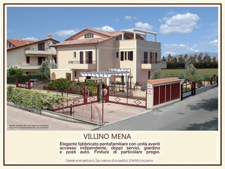 In particolare detto Compendio denominato Villino Mena, sarà composto di cinque unità immobiliari di civile abitazione (due appartamenti al piano terra, due appartamenti al piano primo con abbinata mansarda ed una villetta terratetto) tutte con ingresso indipendente, giardino esclusivo, terrazze pranzabili, 2 camere da letto, doppi servizi e posti auto scoperti esclusivi.