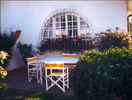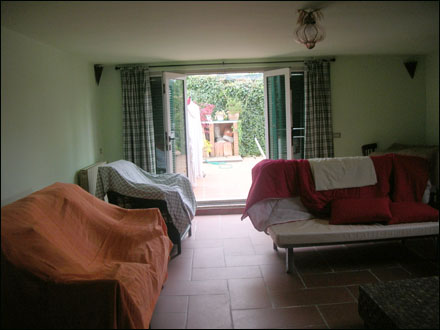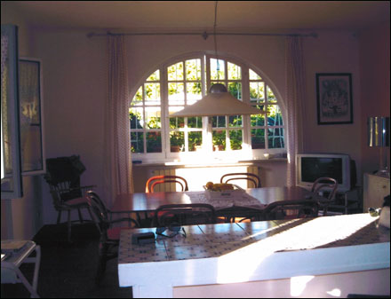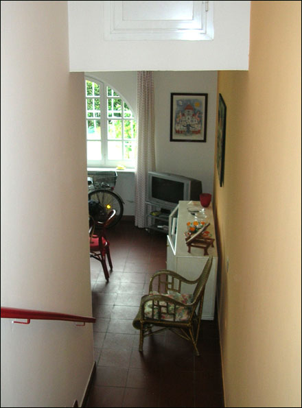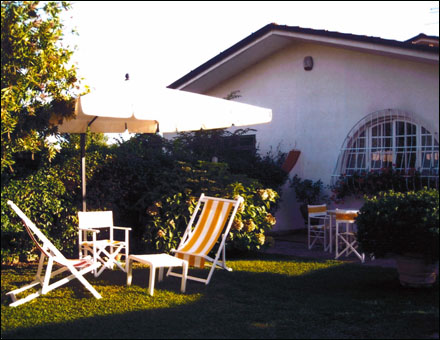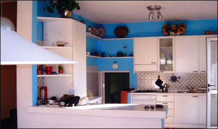 Ingresso tinello con cottura, soggiorno, due camere, due bagni, 500 mt. di giardino completamente attrezzato.